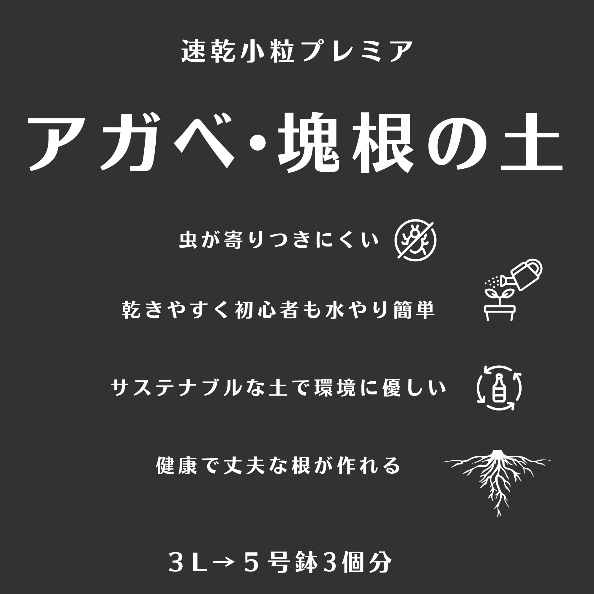 超速乾性により、植え替え後の根張りが早く、根腐れリスクを大幅軽減。