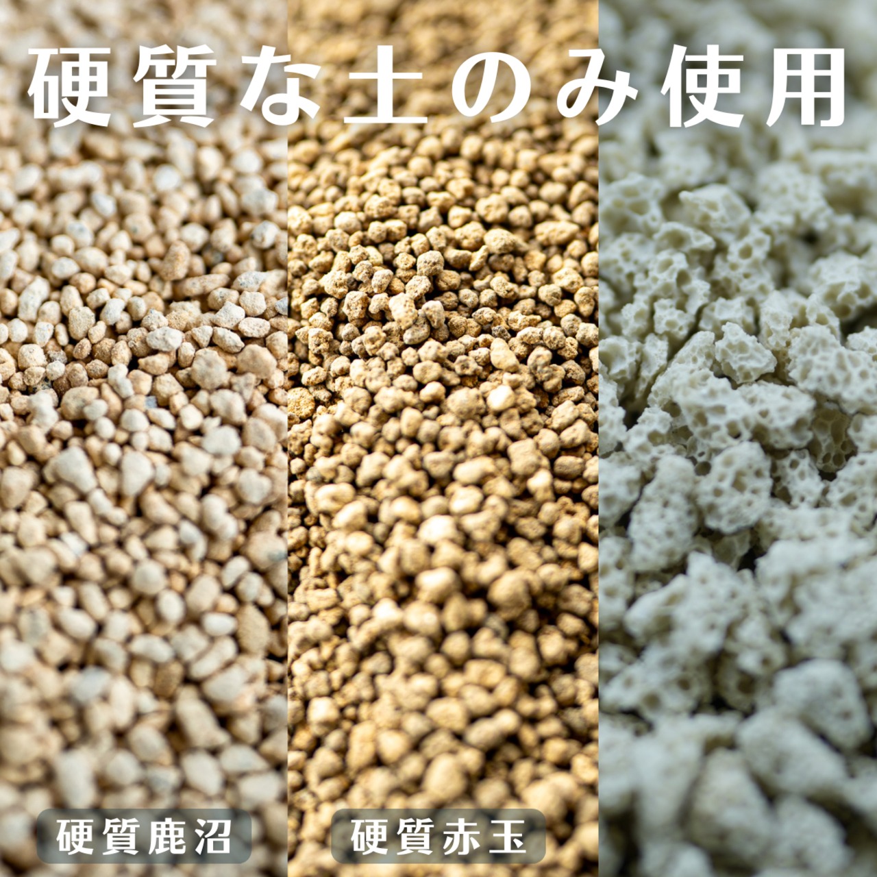 土の種類 硬質赤玉土 硬質鹿沼土 サンゴ風軽石